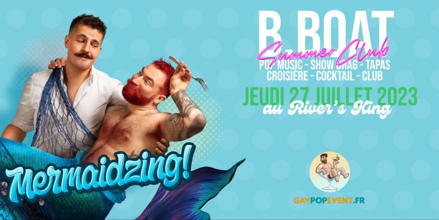 Hello Matelot ! Bienvenue pour cette saison de la B.boat - Summer Club ! Une croisière gay parcourant la Seine te parait fantasque ? Viens, on t’embarque à bord du River’s King ! L’un des rares bateaux des quais de scène à pouvoir naviguer ! Les portes s’ouvrent à 19h ! Sois à l’heure pour la croisière, le bateau prend le large à 20h30 tapante et revient à 22h30.