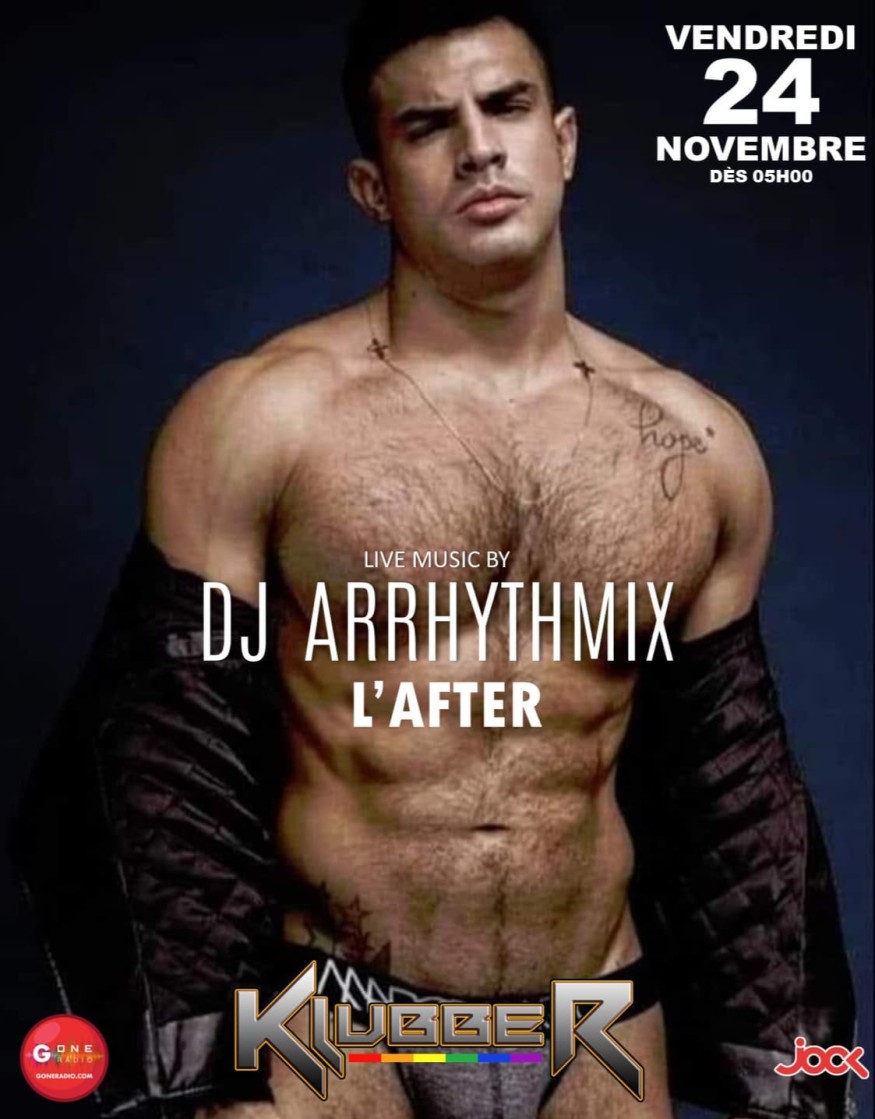 Vendredi matin, on commence la semaine avec DJ ARRHYTHMIX qui viendra mixer au Klubber dès 05h00 du mat pour un set Techno & House. Venez-vous chauffer sur la piste de danse, le podium, la backroom, ….!!!