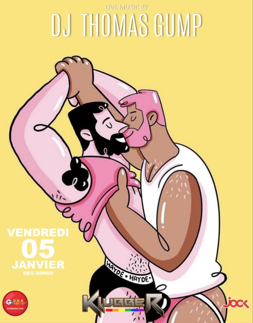 Vendredi matin, on commence la semaine avec DJ THOMAS GUMP qui viendra mixer au Klubber dès 05h00 du mat pour un set Techno & House. Venez-vous chauffer sur la piste de danse, le podium, la backroom, ….!!!