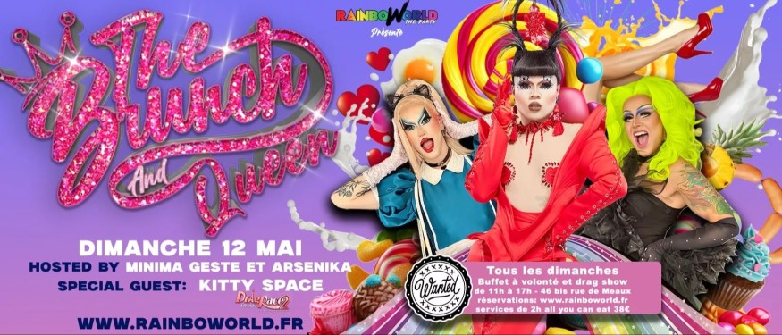 Le Brunch and Queen , le brunch le plus tucké de la capitale vous donne rendez-vous tous les dimanches au Wanted ! hosté par la sublime Minima Geste et la gorgeous Arsenika vous y retrouverez les Queens les plus démentes de la capitale et d'ailleurs tel que : Lolita Banana, Ginger Bitch, Misty Phoenix, MOON, Ruby Onthenail, Kitty Space..... qui se relaieront pour vous faire vivre un moment unique autour de notre buffet Italien XXL et à volonté comprenant un large choix de plats et desserts qui sauront vous séduire "vege friendly" ainsi qu'un buffet de boissons chaude et froide également à volonté.