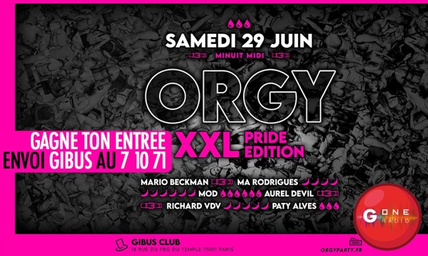 Cette semaine avec G One, gagnez votre entrée à la soirée ORGY XXL PRIDE EDITION ce samedi 29 juin !