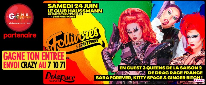 G One en partenariat avec Les Follivores & Crazyvores, vous fait remporter vos entrées pour la soirée LES FOLLIVORES spéciale Pride au Club Haussmann le samedi 24 juin 2023.