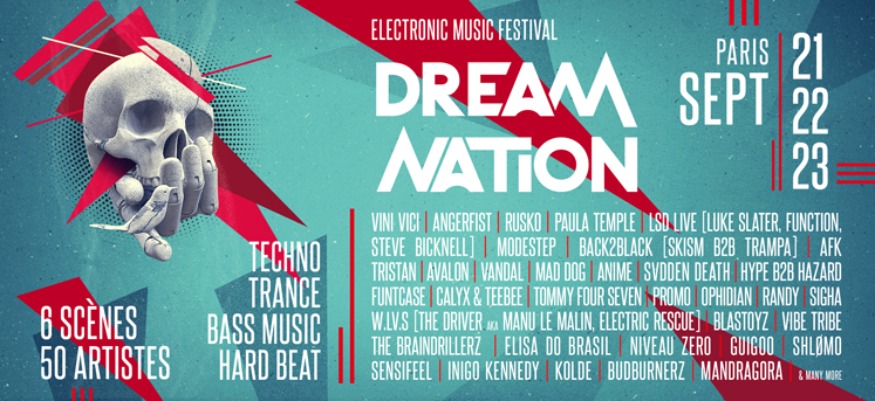 Le festival Dream Nation va se décliner sur trois jours, avec une soirée principale (main event) aux Docks de Paris (Aubervilliers) le samedi 22 septembre. Cette soirée, le cœur de Dream Nation, réunit les principales tribus de la galaxie électronique autour de quatre scènes (techno, hard, bass music, trance). Encore plus que lors des précédentes éditions, la programmation musicale de Dream Nation est exceptionnelle et originale, avec des artistes légendaires, des grands noms internationaux - certains très rares en France, des révélations actuelles et les meilleurs artistes de la scène française.