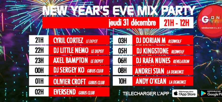 Le 31 décembre célèbre la nouvelle année avec G One. Les meilleurs clubs et soirées débarquent dans ton salon : Gibus Club, Révélation, Redwolf, Le Dépôt, La Démence.....