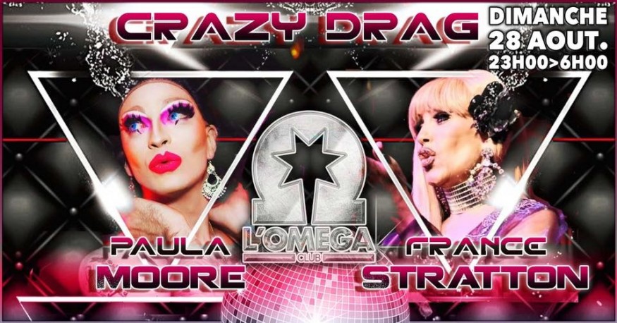 Votre rendez-vous ultra festif du dimanche à L’Oméga Club en mode live show drag à ne manquer sous aucun prétexte !!! Elles seront là plus démentes que jamais, nos Super Guest Paula Moore , France Stratton .! et quelques surprises pour un show à vous couper le souffle !!