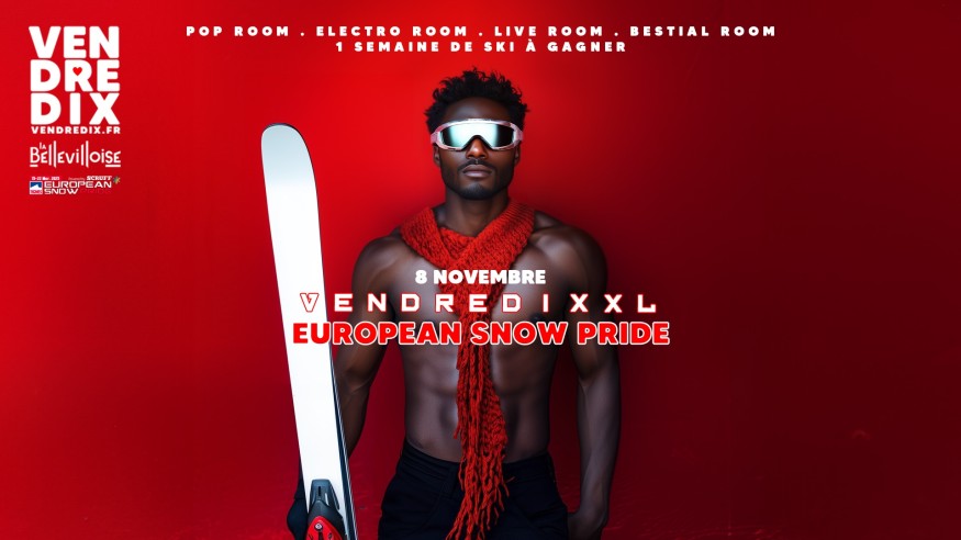 VendrediXXL 08 NOV | 19H/6H | EUROPEAN SNOW PRIDE | 1 semaine de ski à gagner pour deux personnes. Infos sur https://vendredix.fr