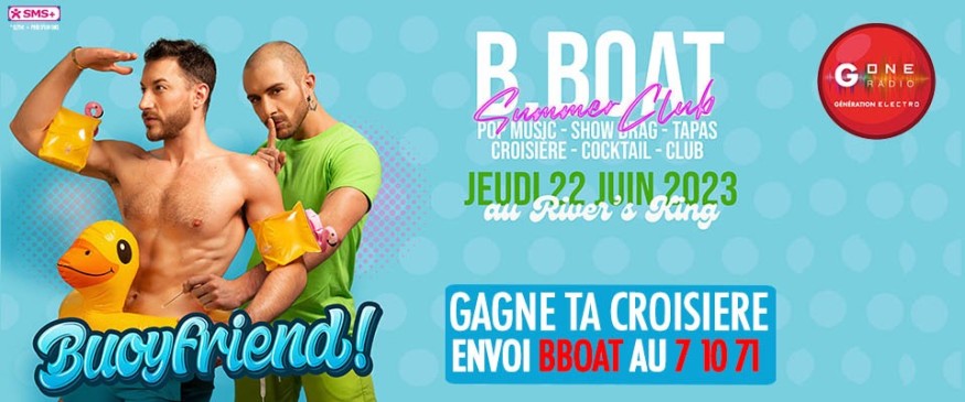 G One en partenariat avec Gay Pop Event vous fait remporter votre place pour la croisière de la B.Boat Summer Club, tous les jeudis de l'été