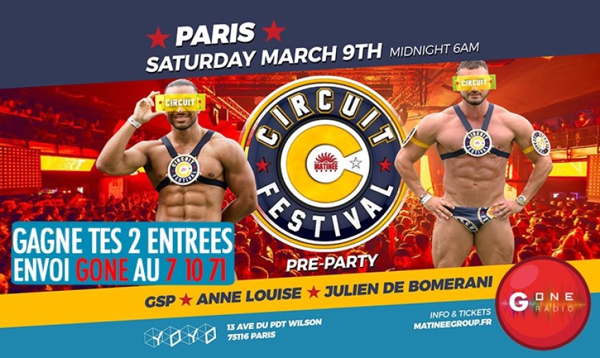 Avec G One, gagne tes 2 entrées à la soirée CIRCUIT FESTIVAL PARIS PRE-PARTY, samedi 9 mars !