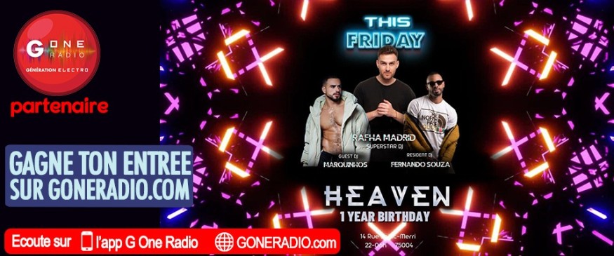 Gagnez votre entrée pour HEAVEN avec G One ! Pour cela, rien de plus simple, il vous suffit de remplir le formulaire en bas de page.