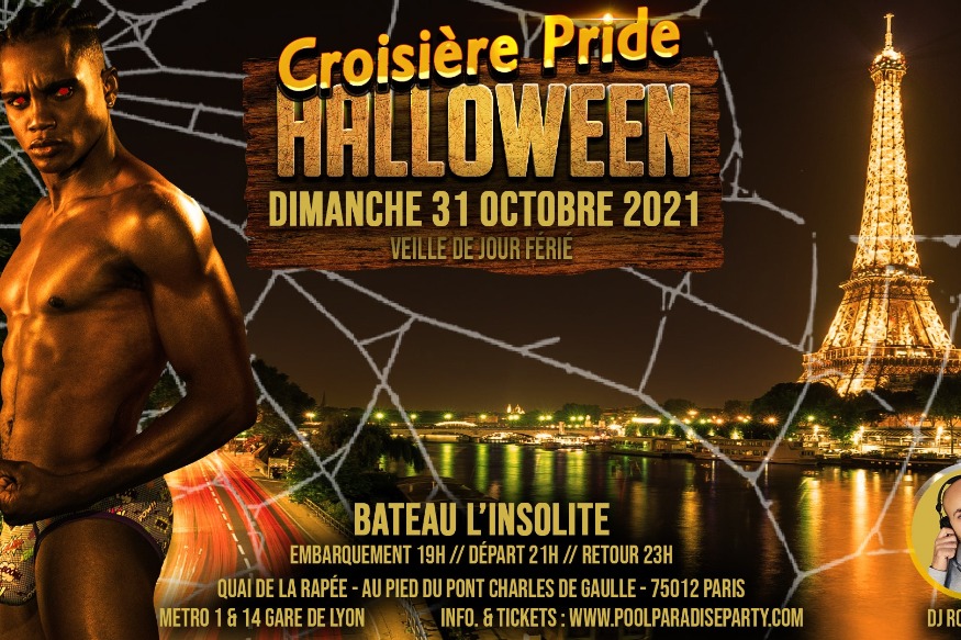 La Pool Paradise Party revient à Paris le 31 octobre 2021 pour une Croisière Pride à l’occasion d’Halloween. N’ayez pas peur et montez à bord du bateau l’Insolite.