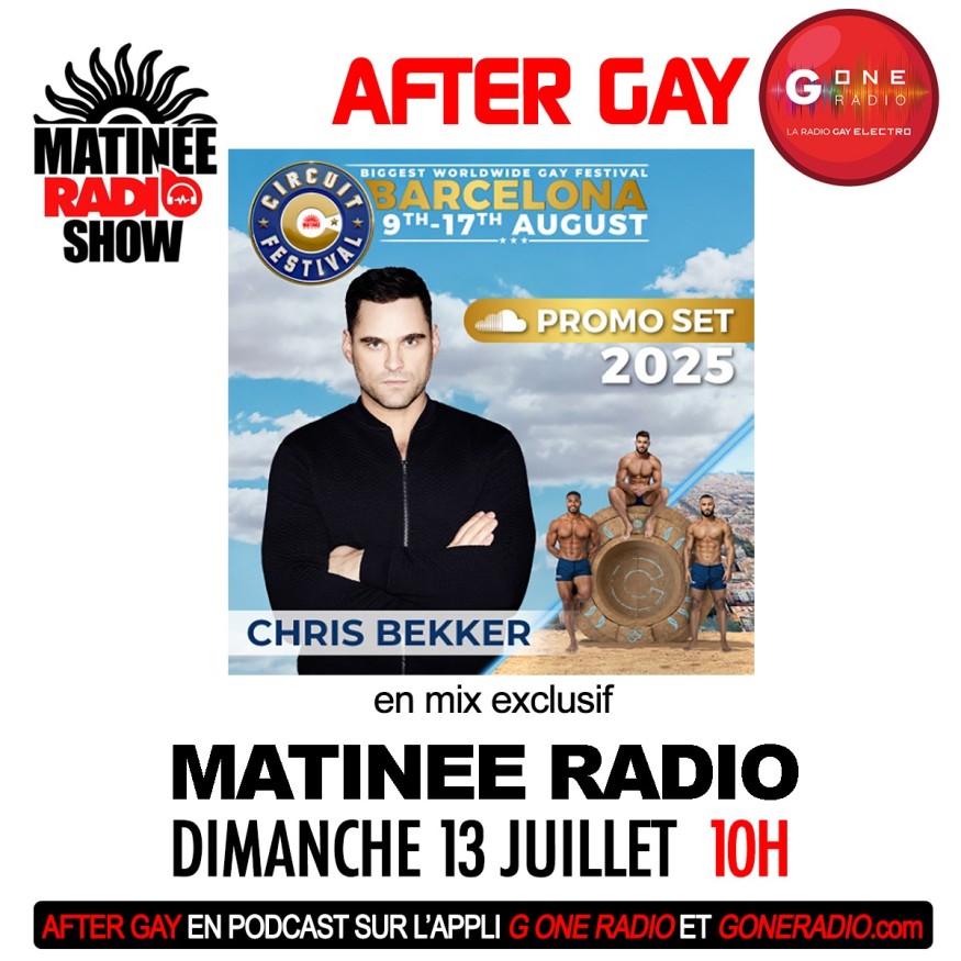 Réécoutez After Gay G One invite les soirées Matinée Group avec Chris Bekker du dimanche 13 juillet 2025.